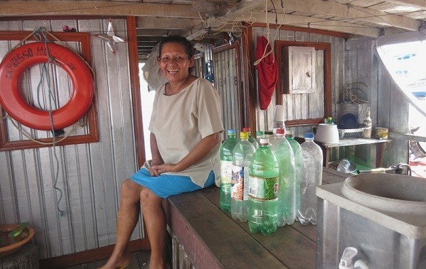 Eliane Nascimento que vive com sua família em um barco no Igarapé de Educandos.